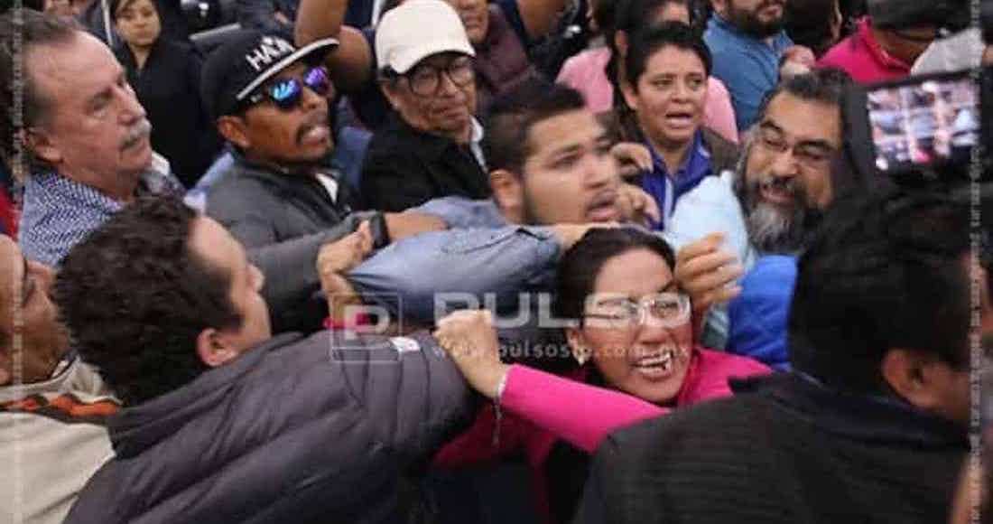 Asimismo, dentro del recitno había otro grupo de morenistas que buscaba el control de poder y dio pauta a la confrontación, lo que derivó el arribo casi inmediato de por lo menos 100 policías antimontes que, ante la supuesa amenaza de agresiones, esperaron orden por parte de la Secretaría de Protección y Seguridad Ciudadana (SPSC) de la entidad.