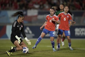 Como en el plantel de la Roja no había otra arquera, su técnico Luis Mena tuvo que improvisar con la delantera María José Urrutia para defender el arco.