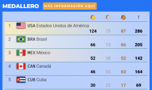 Cuba logró ubicarse quinta con 30 oros. Colombia (29), Argentina (17), Chile (12), Perú (10) y Venezuela (8) redondearon el Top 10.