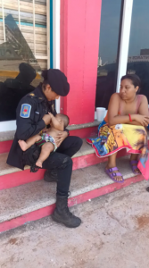 La oficial, al escuchar su crónica, le ofreció con previa autorización, darle alimento al menor ya que contaba con leche materna, debido a que en la Ciudad de México dejó en casa a su hijo y acudió a brindar auxilio a la población que más lo necesita en el puerto de Acapulco.