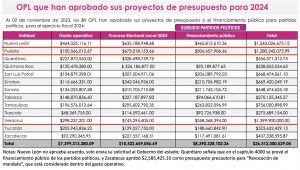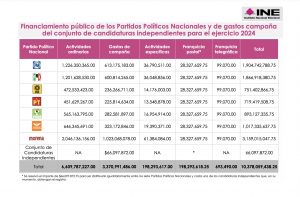 El INE presentó una propuesta de presupuesto de egresos por 37 mil 770 millones de pesos, incluido el financiamiento para los partidos políticos nacionales, pero la Cámara de Diputados de la Federación sólo le aprobó 32 mil 767 millones de pesos. Por lo que, una vez descontados los 10 mil 444 millones de pesos de subsidio a los partidos políticos, al INE sólo le quedarán disponibles 22 mil 323 millones de pesos para sus operaciones durante el 2024.