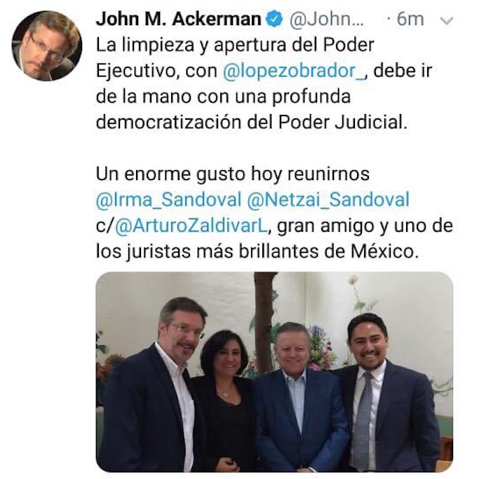 En 2018 volvió a esa táctica, pero en ese texto la retórica que usó fue un discurso de "pueblo", de transformación. Se sabía que Zaldívar era amigo o cercano de la Ministra en retiro y Secretaria de Gobernación Olga Sánchez Cordero y de la entonces Secretaria de la Función Pública, Irma Eréndira Sandoval.