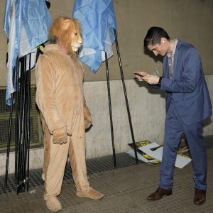 Algunos de los más leales se disfrazan de él y otros se ponen máscaras de león, el animal con el que suele comprarse Milei.