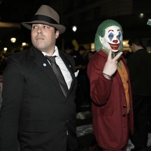 Partidarios de Javier Milei, disfrazados ante la sede de la campaña del político tras el cierre de los centros de votación en la primera ronda de las elecciones generales, en Buenos Aires, Argentina, el 22 de octubre de 2023. Foto: Rodrigo Abd, PA.