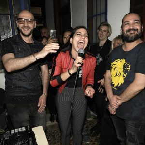 Seguidores de Javier Milei cantan canciones durante una fiesta en una sede de campaña días después de la primera ronda de las elecciones presidenciales, en Buenos Aires, Argentina, el 25 de octubre de 2023. Foto: Rodrigo Abd, AP.