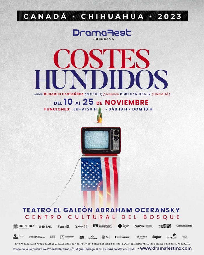 Raquel resaltó el caso de la obra Costes Hundidos, que forma parte de este programa y que se presenta en el Teatro el Galeón Abraham Oceransky del Centro Cultural del Bosque (CCB) bajo la dirección del canadiense Brendan Healy, director artístico en Canadian Stage. "Es hermoso, es un cruce de miradas, de un texto mexicano que habla sobre la migración, sobre la afromexicanidad, sobre un México en 1988, ver ahora la perspectiva de ese México que pensaba en el futuro, es un cruce miradas, de reflexión, de una mirada critica a lo que estamos viviendo hoy en día y de esta manera cada uno de los textos del festival", reveló.