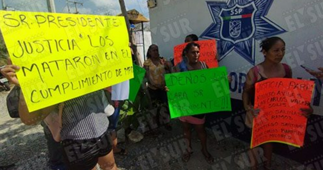 Acapulco, Guerrero, 16 de noviembre (SinEmbargo).- Familiares de los 14 policías asesinados el 23 de octubre en El Papayo, municipio de Coyuca de Benítez, se manifestaron este jueves frente a la Secretaría de Seguridad Pública y en el Palacio Municipal para exigir una pensión vitalicia para las viudas y sus hijos menores de edad.