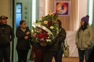Familiares y amigos de Jesus Ociel Baena Saucedo se reúnen en la capilla latinoamericana, ubicada en Saltillo Coahuila, en donde esperan que arribe el cuerpo del Magistrade. Foto: Alejandri Rodríguez, Cuartoscuro