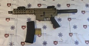 En el vehículo en que viajaban, Nissan XTerra se encontró un arma tipo fusil calibre .223, con el que se presume, dispararon contra las oficinas de seguridad del Gobierno federal.