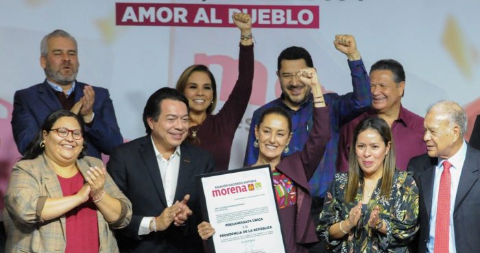 “Asumo la precandidatura a la Presidencia de la República por Morena, el Partido del Trabajo y el Partido Verde con orgullo y compromiso, con humildad, pero con la plena responsabilidad de continuar el rumbo trazado por nuestro pueblo, sin zigzagueos”, declaró Claudia Sheinbaum. “Vamos a caminar juntos y juntas, en unidad, y jamás traicionaré el anhelo del pueblo de México”.