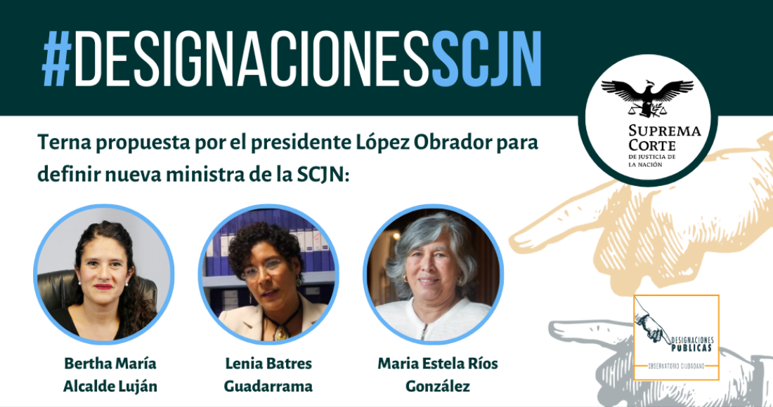 No es exageración, la quinta y actual terna propuesta por el Ejecutivo Federal está compuesta por tres mujeres sumamente cercanas al proyecto político de la llamada “Cuarta transformación”: Bertha María Alcalde Luján, Lenia Batres Guadarrama y María Estela Ríos González, todas ellas con responsabilidades en la actual administración y con vínculos públicos evidentes con el partido en el poder y/o con el mismo Ejecutivo. Es decir, perfiles que no cumplen con el estándar del ser y parecer independientes.