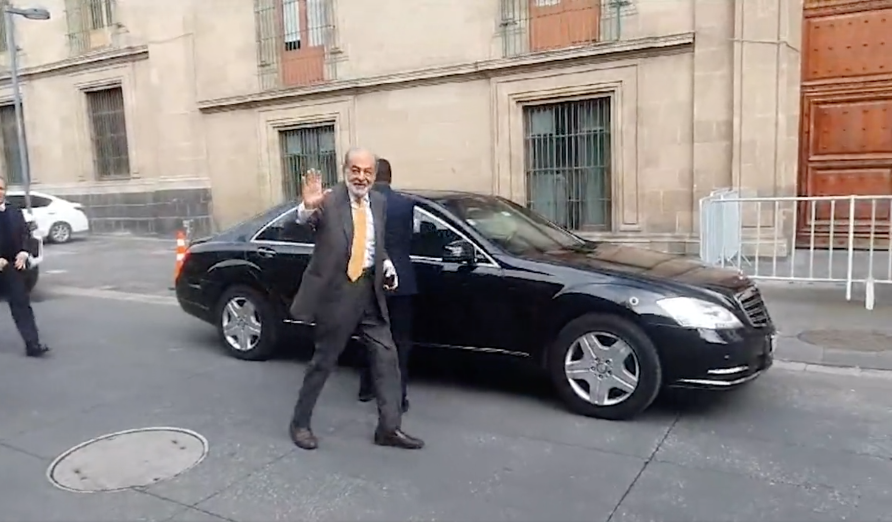 Carlos Slim a su llegada a Palacio Nacional. Foto tomada de video.