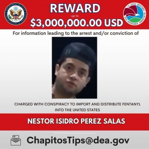 El Departamento de Estado de EU ofrecía hasta este 22 de noviembre de 2023 una recompensa de hasta 3 millones de dólares por la información que conduciera al arresto y/o condena de Néstor Isidro Pérez Salas, alias "El Nini".