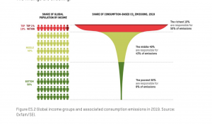 Además, resaltó que, hacia 2030, el 1 por ciento agotará el presupuesto de carbono permitido para mantener la temperatura a bjo de 1.5 grados de aumento, que es el límite que se busca tener para evitar mayores catástrofes, explicó. "Si ahora vemos las consecuencias con 1.1 grados C, si se supera viviremos en un constante estado de emergencia".