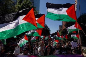 Activistas e integrantes de diferentes colectivas también se manifestaron a favor de Palestina, donde cerca de dos tercios de las más de 13 mil personas asesinadas en Gaza son mujeres y niños, de acuerdo con la Organización de las Naciones Unidas (ONU).