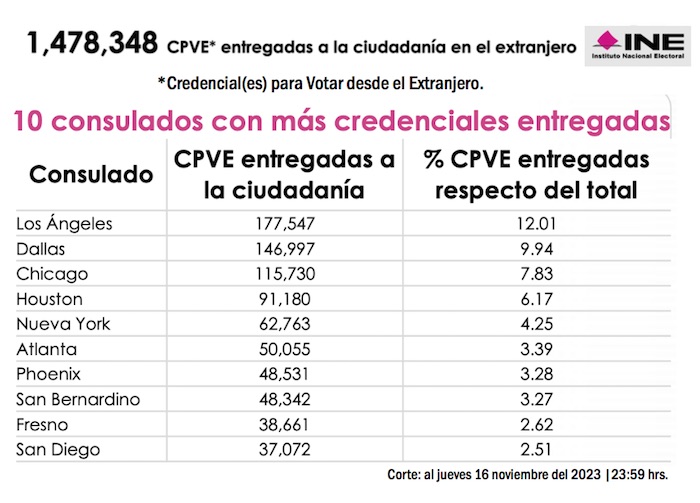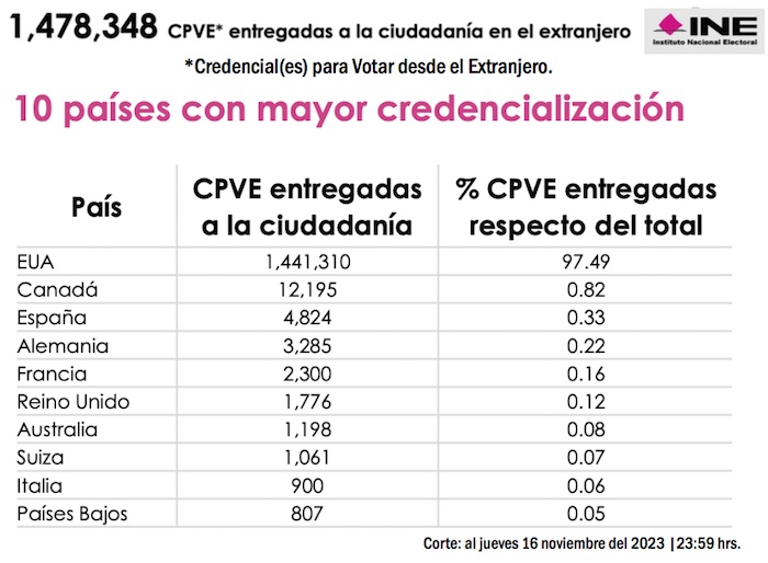Ciudad de México, 27 de noviembre (SinEmbargo).– Hasta un máximo de mil ciudadanos que tengan credencial de elector vigente podrán votar de manera presencial el domingo 2 de junio del 2024 en los 23 módulos que el gobierno de México instalará en Estados Unidos, Canadá, Francia y España, aunque no se hayan registrado previamente ante el Instituto Nacional Electoral (INE), se advierte en un acuerdo publicado hoy en el Diario Oficial de la Federación, se planteó este lunes en “Puntos y Comas”.