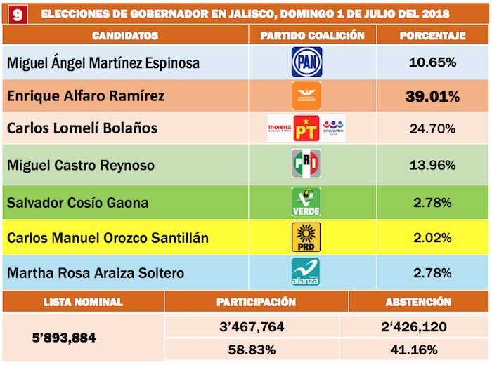 Y en la contienda, ya con candidatos, la aspirante de la coalición de Morena, Claudia Delgadillo, obtendría el 41.5 por ciento de los votos, contra el 24.4 por ciento de Pablo Lemus, de Movimiento Ciudadano.