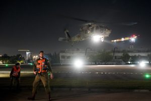 Un helicóptero de la Fuerza Aérea israelí que traslada a un rehén liberado por Hamás aterriza en el centro médico Sheba en Ramat Gan, Israel, el 30 de noviembre de 2023. Foto: Ariel Schalit, AP