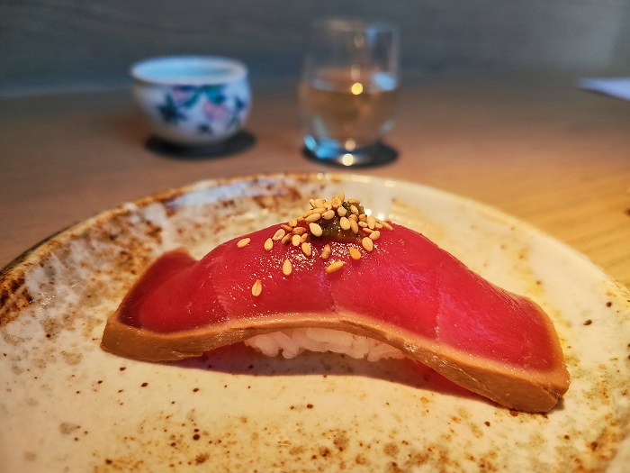 En su menú hay opciones como Ankake de cangrejo, nigiri de Akami marinado + yuzukosho; Camarón + Uni-miso+ Flama; Mizore Misoshiru de Hongos y el flan de matcha.