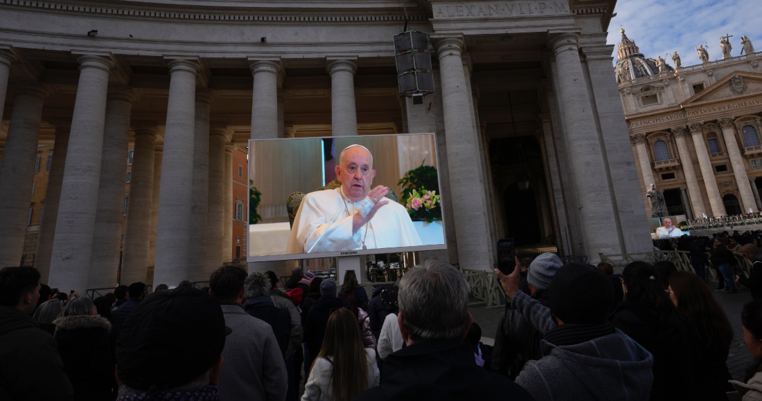 Miles de espectadores observaron al Papa Francisco a través de enormes pantallas en la Plaza de San Pedro.