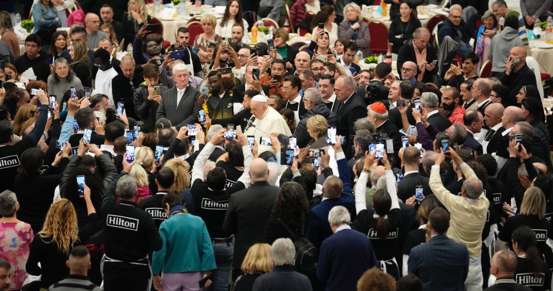 “Queridos hermanos y hermanas, buen día. Tampoco hoy podré leer todo. Estoy mejorando, pero la voz todavía no” está en condiciones de leerlo todo, dijo Francisco. Seguidamente le pasó el micrófono a un cura que leyó los comentarios escritos, incluyendo unos sobre la guerra entre Israel y Hamás.
