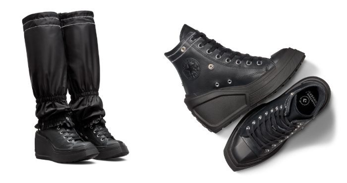 -Converse x Martine Ali: la primera colaboración entre Converse y la diseñadora de Brooklyn, Martine Ali, quien transforma el icónico Chuck 70 en una pieza modular llamativa, convirtiéndolo en un diseño moderno y con atrevido estilo: los nuevos Chuck 70 De Luxe Wedge, con un toque vanguardista al ícono premium. El diseño de este Chuck 70 De Luxe Wedge reúne temas de modularidad y versatilidad en una versión audaz del icónico Chuck 70 que puedes transformar. Las extensiones removibles te permiten pasar de un estilo moderno y sobrio a un estilo vanguardista hasta la rodilla en un instante.