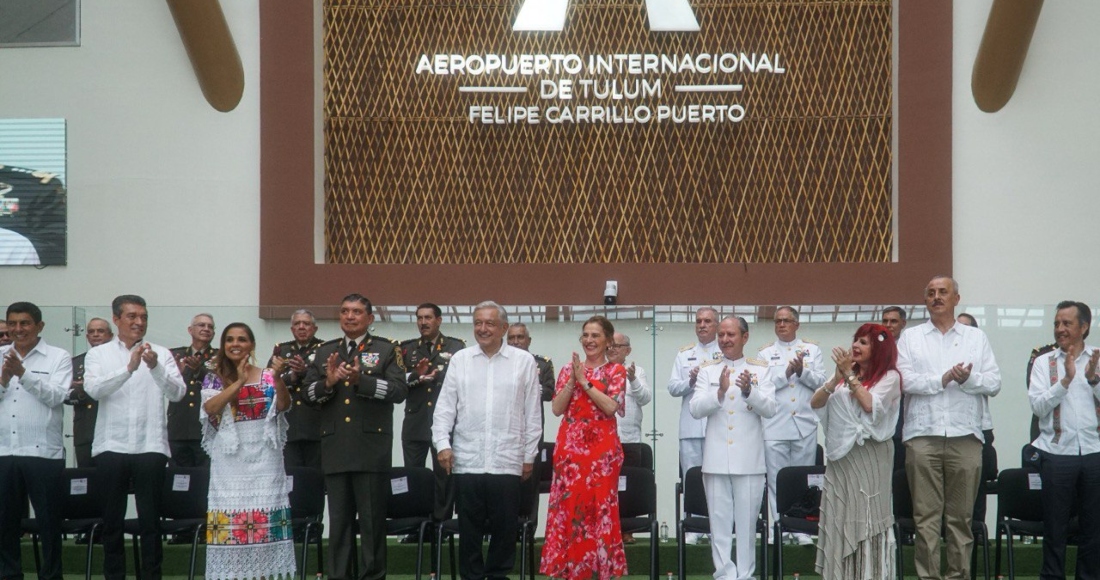 De la mano del Tren Maya se construyó el Aeropuerto "Felipe Carrillo Puerto" de Tulum, Quintana Roo, para atender la demanda de turistas en la Península de Yucatán. La inversión para la terminal aérea ascendió a los 3 mil 200 millones de pesos y su administración quedó a cargo de la Secretaría de la Defensa Nacional (Sedena).