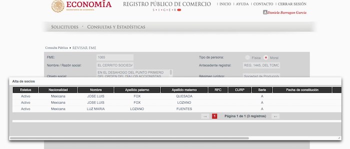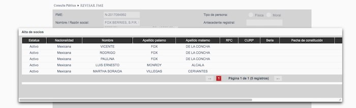 De acuerdo con el Registro Público de Comercio (Siger), Fox Berries nació en 2017 en San Francisco del Rincón y tiene entre sus socios activos a Vicente, Rodrigo y Paulina Fox, hijos de Vicente Fox.