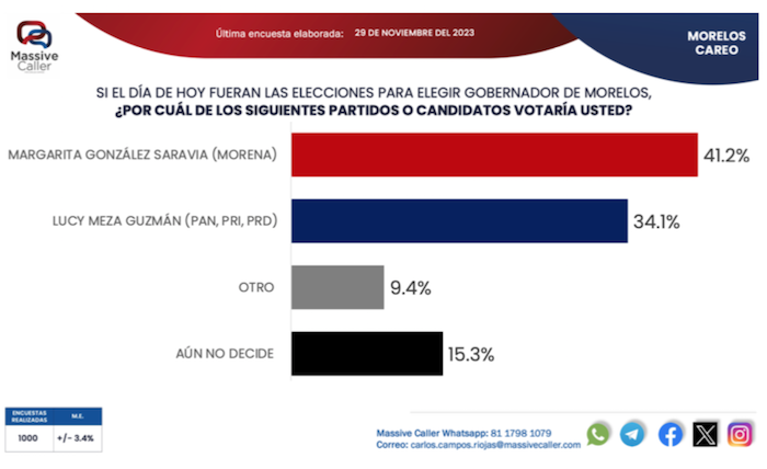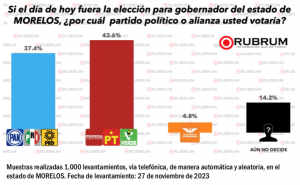 Hasta el momento hay pocas mediciones actualizadas sobre las preferencias electorales en Morelos durante la etapa de precampañas. Las que ofrecen las consultoras Massive Caller y Rubrum, fueron realizadas con una técnica de “robot”, que envía en forma automática grabaciones con el cuestionario de la encuesta, que las personas contestan, lo que sin duda implica el riesgo de que se presenten sesgos y de que las muestras no sean plenamente representativas.