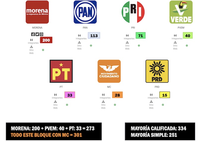 La mayoría calificada en la Cámara de Diputados se integra con 334 legisladores, por lo tanto, para aspirar a sumar esos representantes populares, Morena debe inscribir a algunos de sus militantes amparados en los membretes de PT y PVEM, y por supuesto, dejarles a esos partidos algunos espacios para sus militantes de casa.