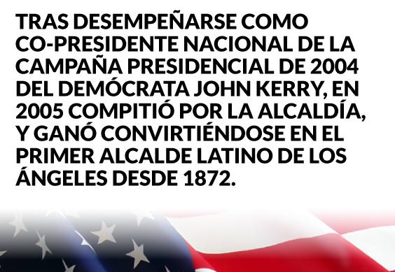 Tras desempeñarse como co-presidente nacional de la campaña presidencial de 2004 del demócrata John Kerry, en 2005 regresó a la campaña por la alcaldía, otra vez contra Hahny, pero en esta oportunidad ganó, convirtiéndose en el primer alcalde latino de Los Ángeles desde 1872.