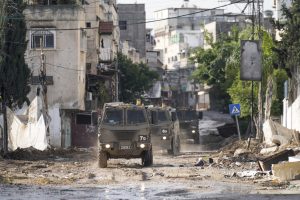 Los testigos contaron que los soldados intercambiaron disparos intermitentes con insurgentes palestinos y contra jóvenes que arrojaban piedras a los vehículos blindados e incendiaban neumáticos en las calles.