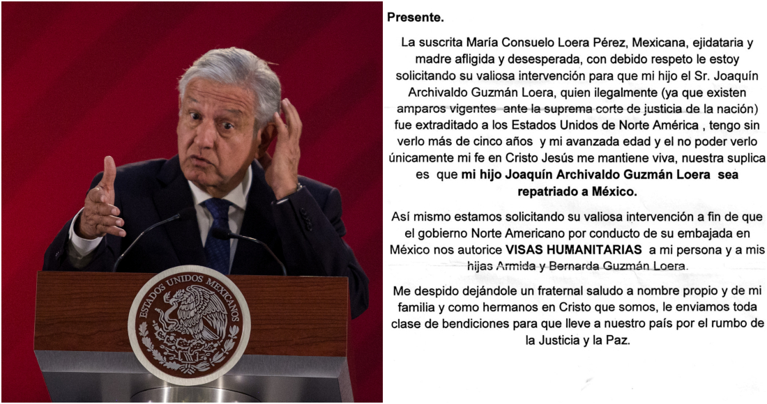 En el 2019, dos años después de la extradición de "El Chapo" a Estados Unidos, Loera Pérez agradeció a López Obrador y a la Embajada de EU haberle otorgado una visa huanitaria para poder reunirse con su hijo.