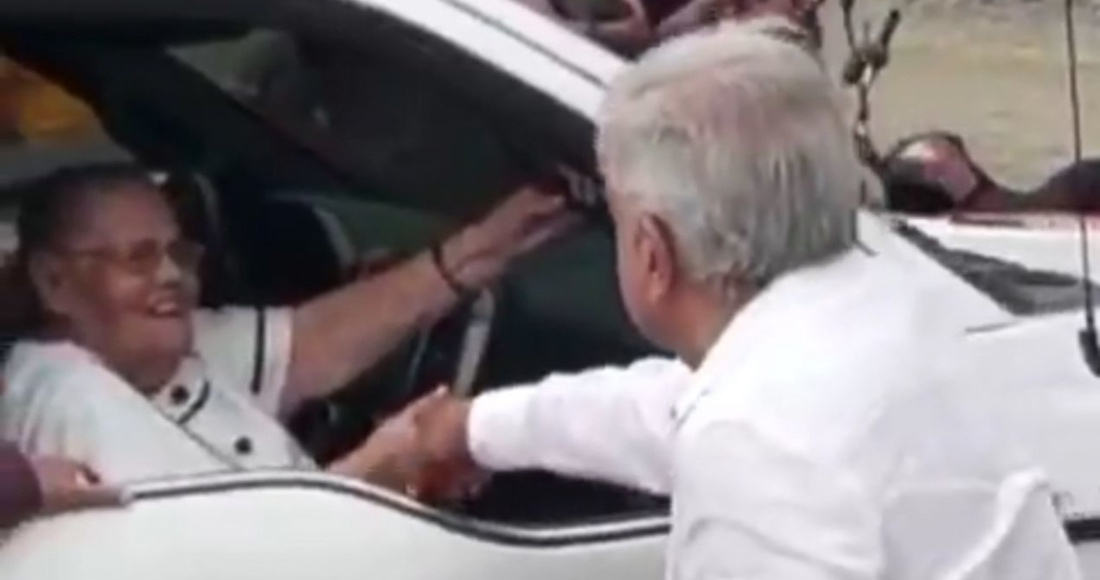 El breve encuentro entre la señora Consuelo Loera, madre de Joaquín Guzmán Loera, y el Presidente López Obrador se dio el pasado 29 de mayo. Foto: Cuartoscuro.