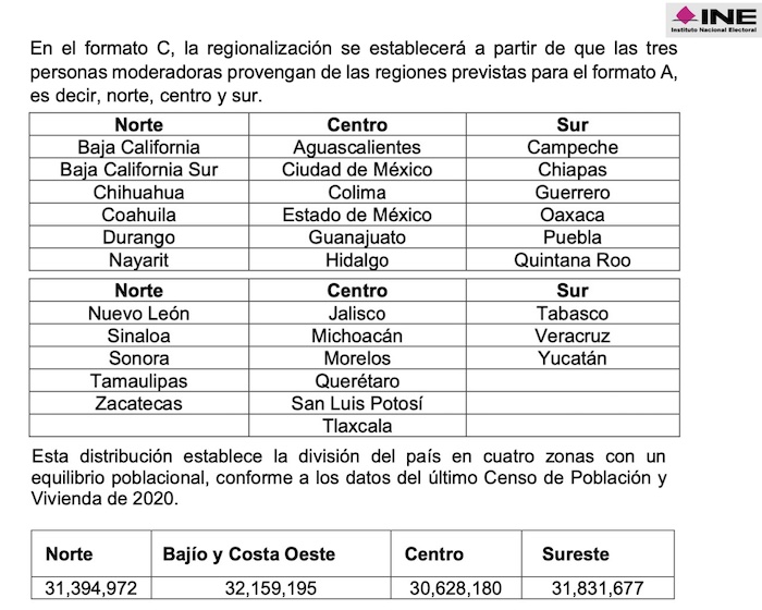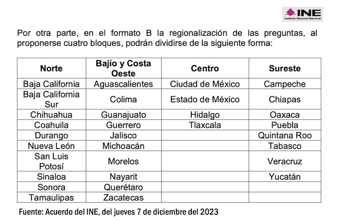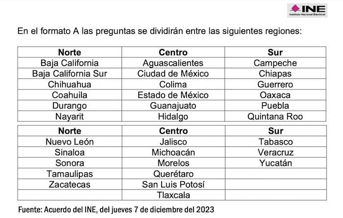 Para la participación de los ciudadanos, el país se dividirá en las regiones noroeste, centro, centro occidente, noreste, sur y sureste.