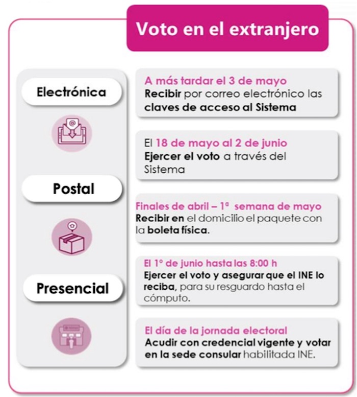 Todos los mexicanos residentes en el extranjero que pretendan votar el domingo 2 de junio del año próximo, tienen como plazo máximo para registrarse ante el INE el 20 de febrero del 2024.