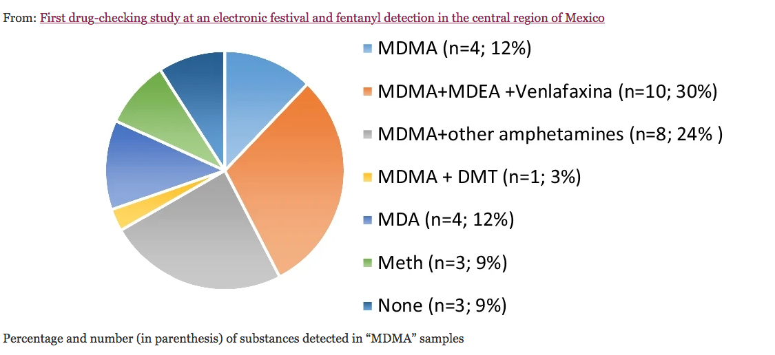 El estudio se realizó en 2021 en un festival de música electrónica al aire libre cercano a la Ciudad de México –del cual no se especifica el nombre– por un equipo de científicos que analizó 51 muestras de drogas de 40 consumidores, quienes se ofrecieron voluntariamente a la prueba, gratuita y anónima.