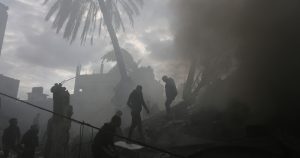 La guerra aérea y terrestre ha arrasado gran parte del norte de Gaza, matado a miles de civiles; muchísimos están hacinados en refugios abarrotados y tiendas de campaña, sobreviviendo gracias a un goteo de ayuda humanitaria. Unos 1.9 millones de palestinos —casi el 85 por ciento de la población de Gaza— han huido de sus hogares.