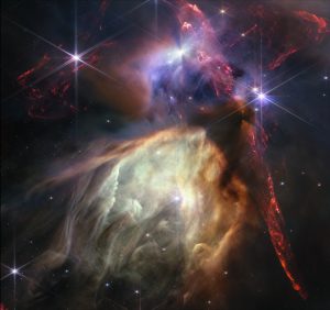 Se trata de la región de formación estelar más cercana a nosotros. su proximidad, a 390 años luz de distancia, permitió obtener con Webb un primer plano muy detallado, sin estrellas en primer plano en el espacio intermedio.