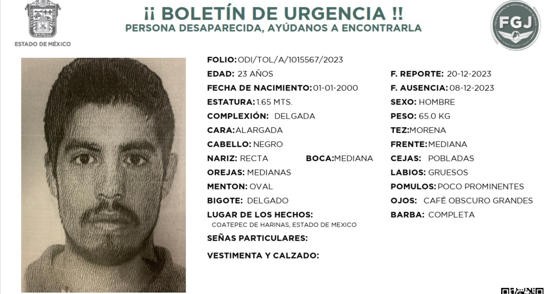 De acuerdo con las autoridades mexiquenses, los boletines emitidos por la FGJEM fueron elaborados con datos de media filiación, nombre completo y fotografía, los cuales se continúan difundiendo en redes sociales y a través de las plataformas digitales oficiales, así como por las fiscalías de las 31 entidades federativas, la Fiscalía General de la República (FGR), la Comisión Nacional de Búsqueda de Personas y se distribuyeron de manera física por la región donde ocurrieron los hechos.