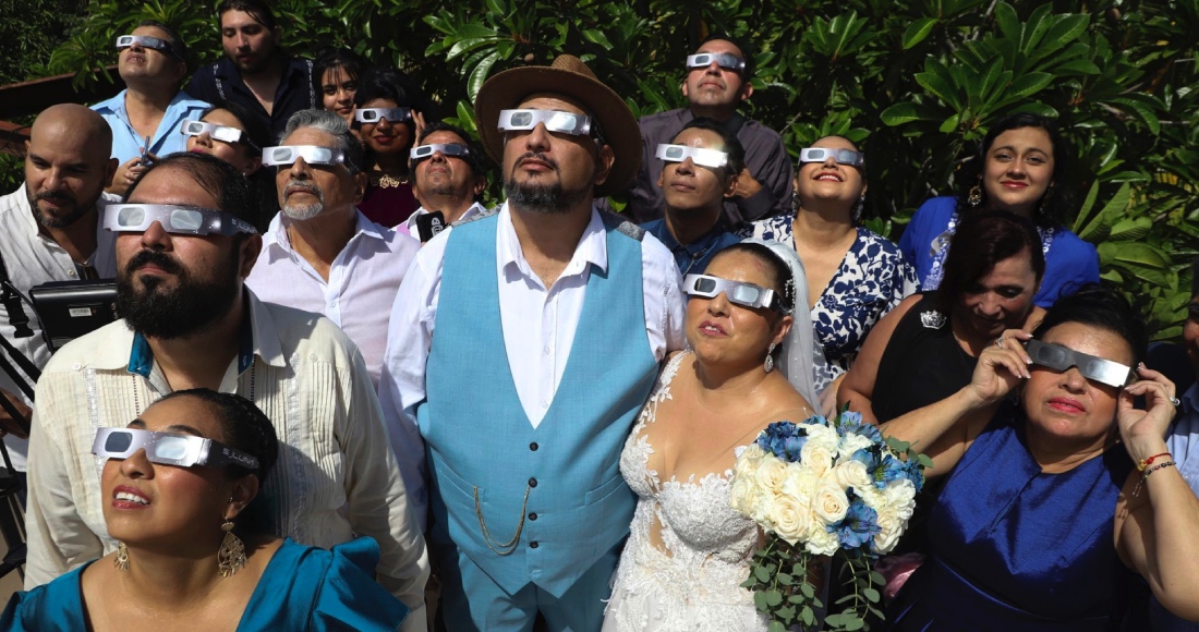 Un turista llega en un vehículo americano clásico para un show en el Salón Tropicana en La Habana, Cuba, el 2 de noviembre de 2023. Foto: Ramón Espinosa, APLos novios Isaac Medina, en el centro, y Jazmín González observan el eclipse solar anular, más conocido como anillo de fuego, antes de comenzar su ceremonia, en Mérida, México, el 14 de octubre de 2023. Foto: Martin Zetina, AP