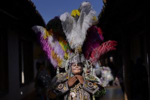 Ciudadanos asisten a una vigilia por los muertos que dejó la protesta social derivada de la destitución del presidente Pedro Castillo, en Juliaca, Perú, el 10 de enero de 2023. Foto: José Sotomayor, APUn bailarín ajusta su traje antes del desfile en homenaje a Santo Tomás, el patrón de Chichicastenango en Guatemala, el 21 de diciembre de 2023. Foto: Moisés Castillo, APPersonas nadan en el río Renaico bajo un cielo pintado de naranja por el humo de incendios forestales en Renaico, Chile, el 4 de febrero de 2023. Foto: Matías Delacroix, APVecinos y parientes de Máximo Jerez, un niño de 11 años asesinado por un hombre armado que atacó en su fiesta de cumpleaños, destruyen la casa del presunto tirador, en el barrio de Los Pumitas de Rosario, Argentina, el 6 de marzo de 2023. Foto: Rodrigo Abd, AP