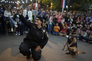 Migrantes cruzan el Río Bravo hacia Estados Unidos con un bebé en una maleta, visto desde Matamoros, México, el 10 de mayo de 2023. Foto: Fernando Llano, APUn migrante interpela a uniformados de la Guardia Nacional de Texas al otro lado de una barrera de púas metálica en el Río Bravo, visto desde Matamoros, México, el 11 de mayo de 2023. Foto: Fernando Llano, APLa entrenadora Adriana Ayala posa para un selfie con un perro policía en una exhibición por la conmemoración de los 212 años de Independencia de Paraguay, en Asunción, el 14 de mayo de 2023. Foto: Jorge Sáenz, APUn trabajador fumiga un vecindario contra el mosquito vector del dengue en Caracas, Venezuela, el 12 de diciembre de 2023. Foto: Matías Delacroix, AP
