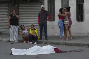 Una manifestante contra el gobierno, vestida como una barbie con un arma de mentira, participa en una convocatoria de protesta para exigir elecciones inmediatas a la presidenta peruana Dina Boluarte y justicia para los asesinados en las protestas de inicio de año, tras la destitución como presidente de Pedro Castillo en Lima, Perú, el 22 de julio de 2023. Foto: Martín Mejía, APResidentes y activistas ambientales miran a una tortuga marina Cardon avanzar hasta el océano tras ser liberada por conservacionistas, en la playa de La Sabana, Venezuela, el 16 de julio de 2023. Foto: Ariana Cubillos, APVarios policías aguardan bajo la lluvia en vigilancia del perímetro del Tribunal Supremo Electoral mientras manifestantes marchan en apoyo del proceso electoral, en Ciudad de Guatemala, el 8 de julio de 2023. Foto: Moisés Castillo, APVarias personas lloran junto al cadáver de un hombre, asesinado en circunstancias desconocidas, en una calle de Durán, Ecuador, el 21 de julio de 2023, en medio de una ola de violencia que las autoridades atribuyen a la lucha de territorio entre bandas del crimen organizado. Foto: Dolores Ochoa, AP