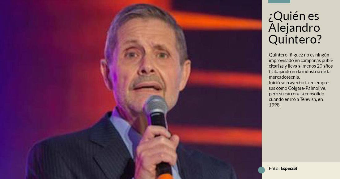 Alejandro Quintero Íñiguez fue vicepresidente de Comercialización de Televisa y como tal diseñó la campaña publicitaria del proyecto presidencial de Peña Nieto para 2012, desde que éste era Gobernador del Estado de México, entre 2005 y 2011, y salió de esa empresa en 2015 para irse a trabajar con él en la Presidencia de la República. Ahora es vinculado a la campaña de la oposición rumbo a 2024.
