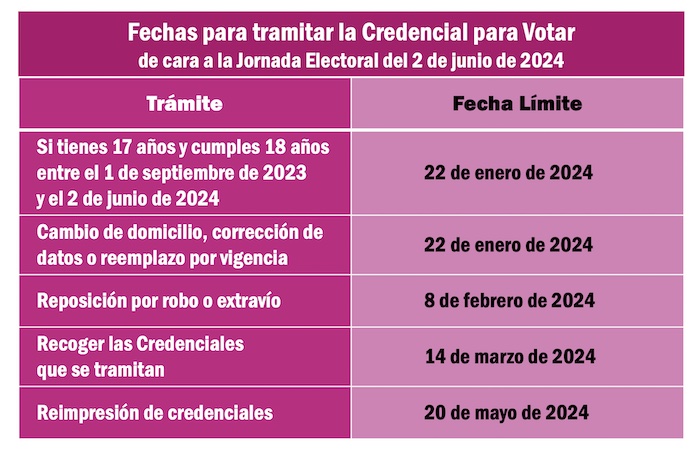 Enero del 2024 es un mes clave para las personas que deban realizar algún trámite para regularizar su credencial de elector y tener derecho a participar en los comicios de este año.