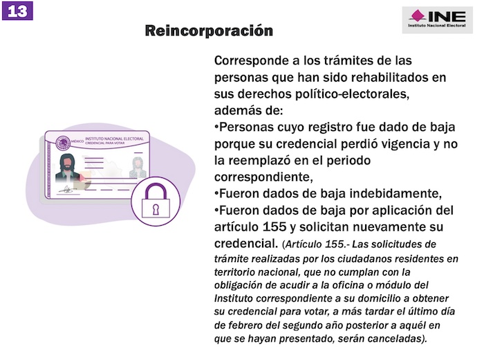 De igual manera, el lunes 22 de enero del 2024 se cumple el plazo para las personas que pretendan realizar un cambio de domicilio, una corrección de datos o reemplazar su credencial de elector por termino de vigencia, se explicó en "Puntos y Comas", programa que se transmite en el canal de YouTube de SinEmbargo Al Aire.