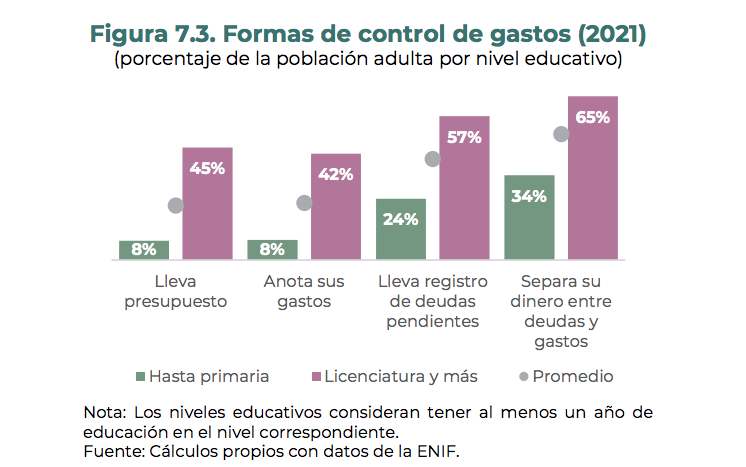 De acuerdo con los resultados de la Encuesta Nacional de Inclusión Financiera 2021, la cual realiza la Comisión Nacional Bancaria y de Valores (CNBV) en colaboración con el Instituto Nacional de Estadística y Geografía (Inegi), sólo dos de cada 10 mexicanos llevan un presupuesto de sus gastos y cuatro de cada 10 tienen un registro de sus deudas pendientes, mientras que el 50 por ciento dijo separar su dinero entre deudas y gastos.