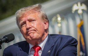 El expresidente Donald Trump hace una pausa antes de concluir sus declaraciones en un mitin el 25 de septiembre de 2023, en Summerville, Carolina del Sur. Foto: Artie Walker Jr., AP