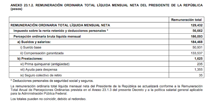 En efecto, de acuerdo con las remuneraciones aprobadas para este 2024, el Presidente López Obrado percibe una remuneración ordinaria total líquida mensual neta —que ya contempla prestaciones— de 129 mil 432 pesos, casi la mitad de la dieta mensual de los Ministros, quienes además cuentan con un pago por riesgo de 416 mil 754 pesos, además de un Seguro de vida institucional, un Seguro de gastos médicos mayores, un Seguro de separación individualizado así como un estímulo por antigüedad.